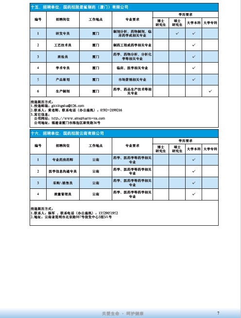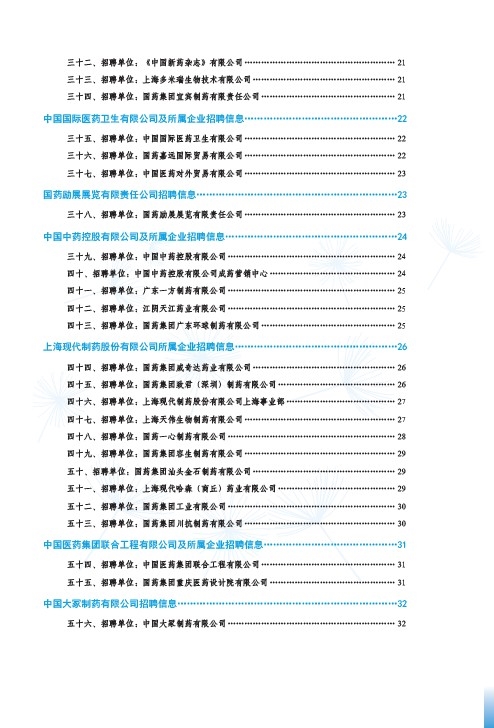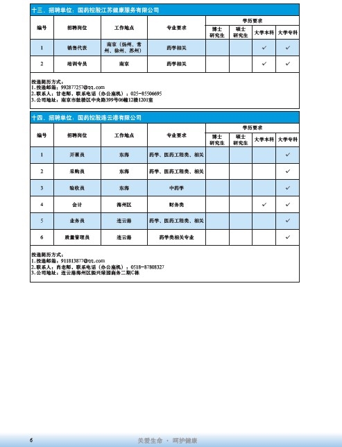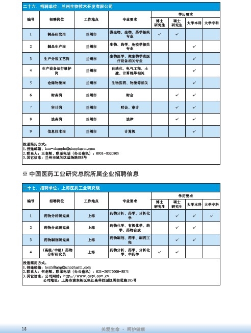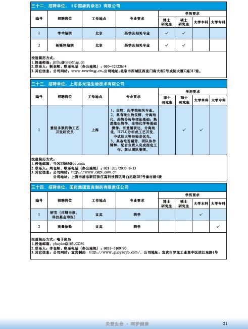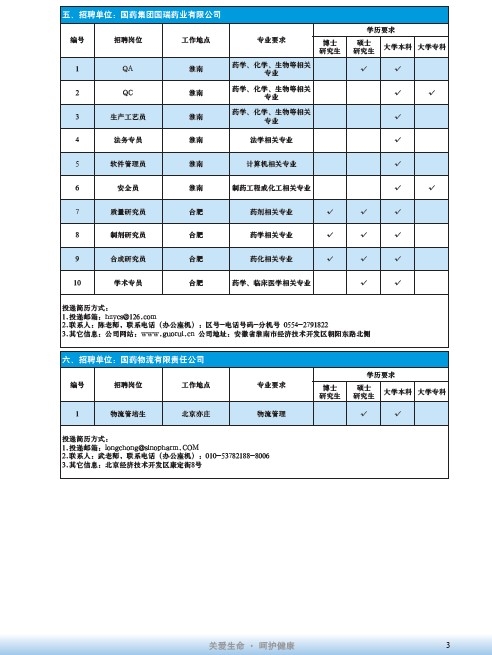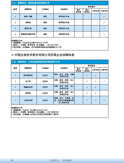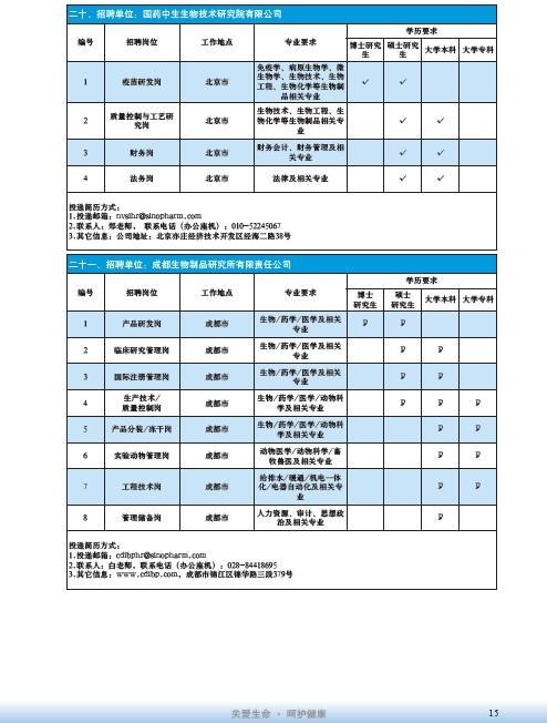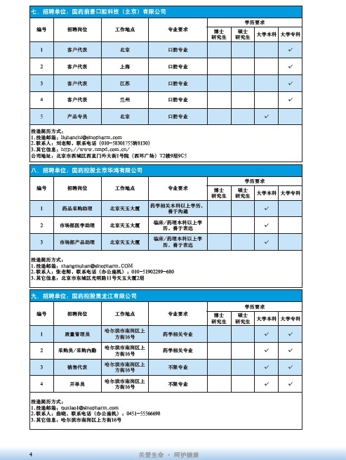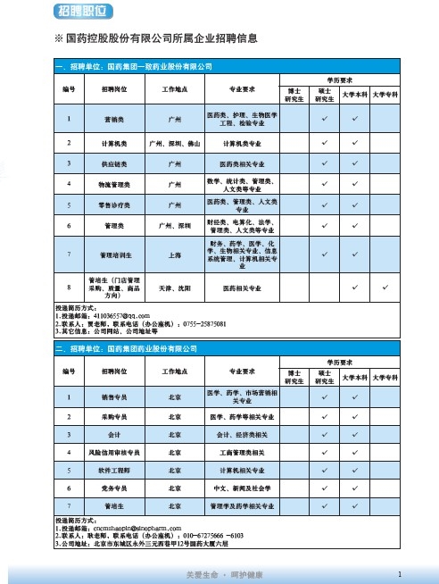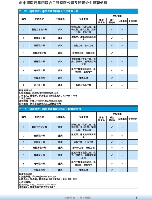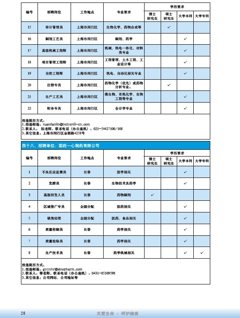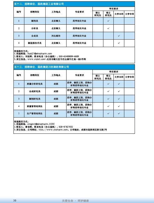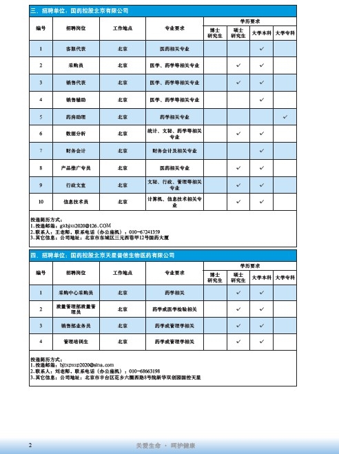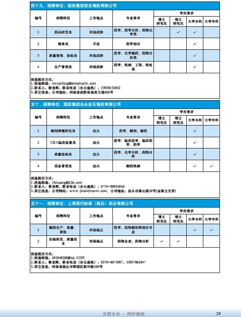 國藥集團2020屆高校畢業生招聘信息匯總表