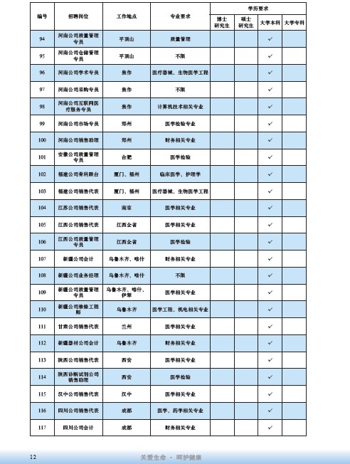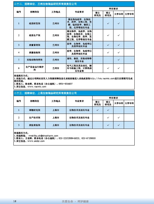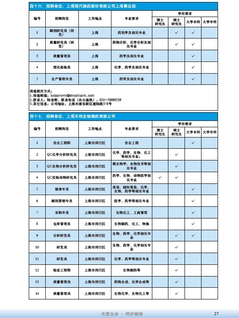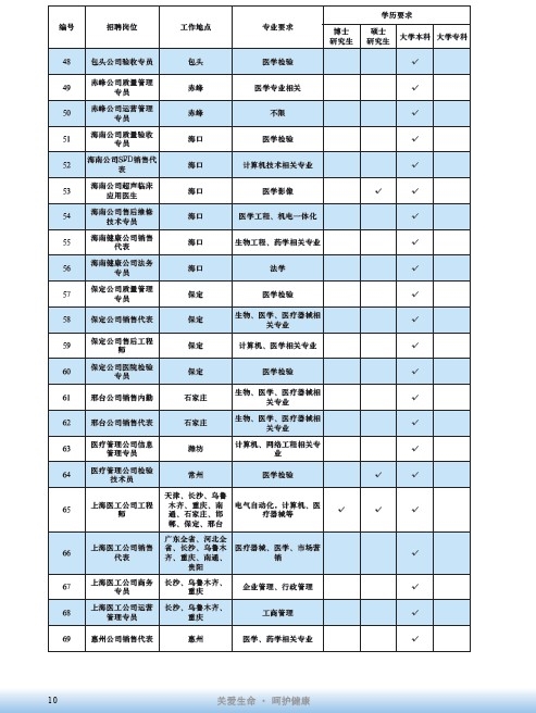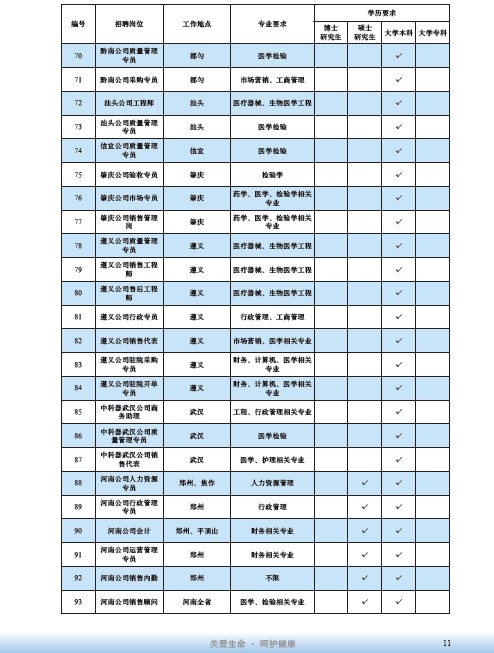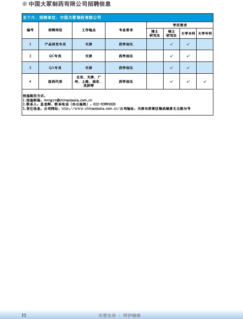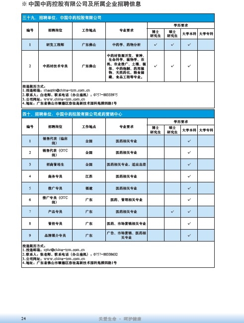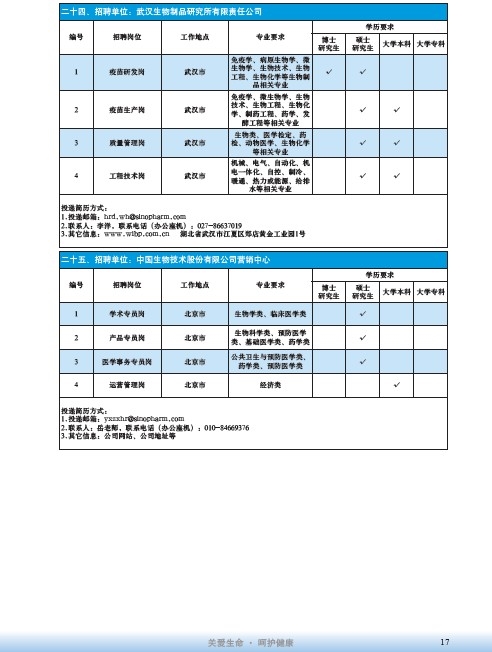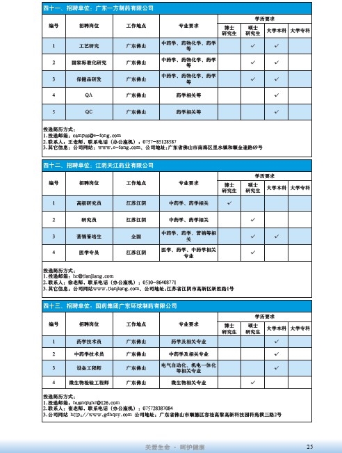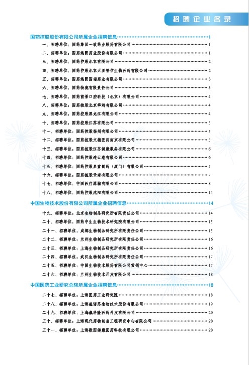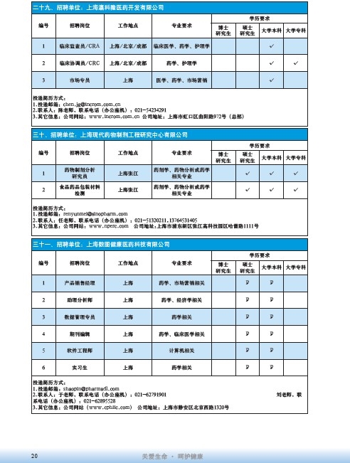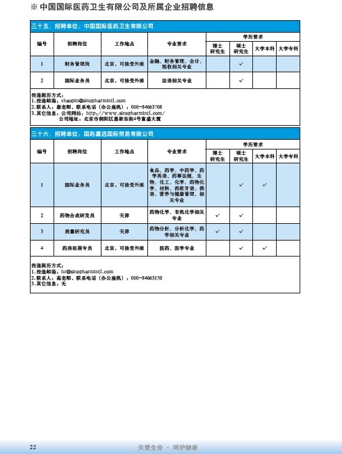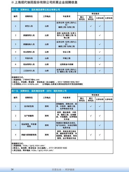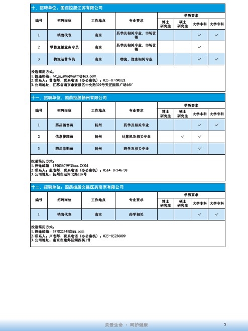 國藥集團2020屆高校畢業生招聘信息匯總表