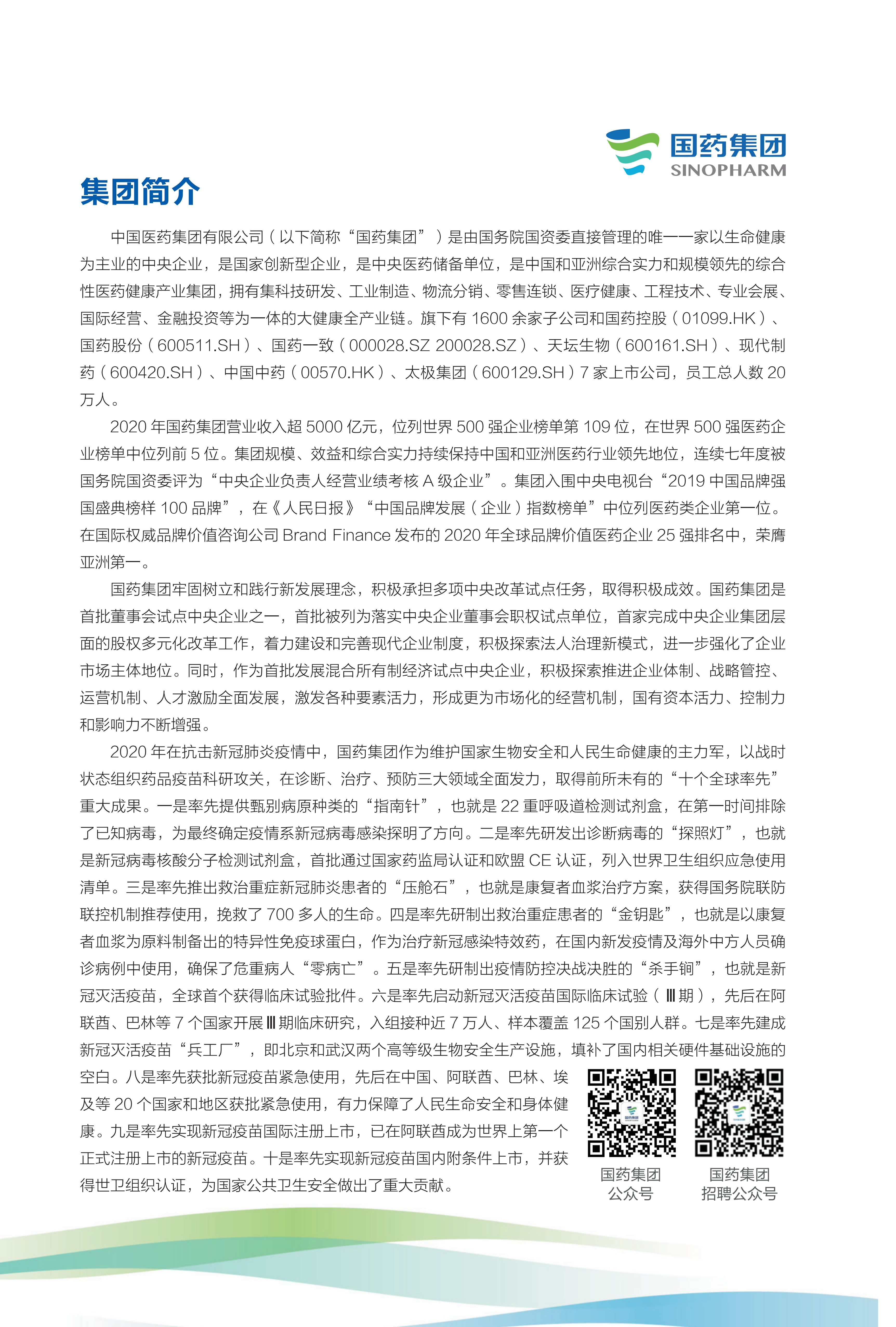 國藥集團2021年校園招聘手冊