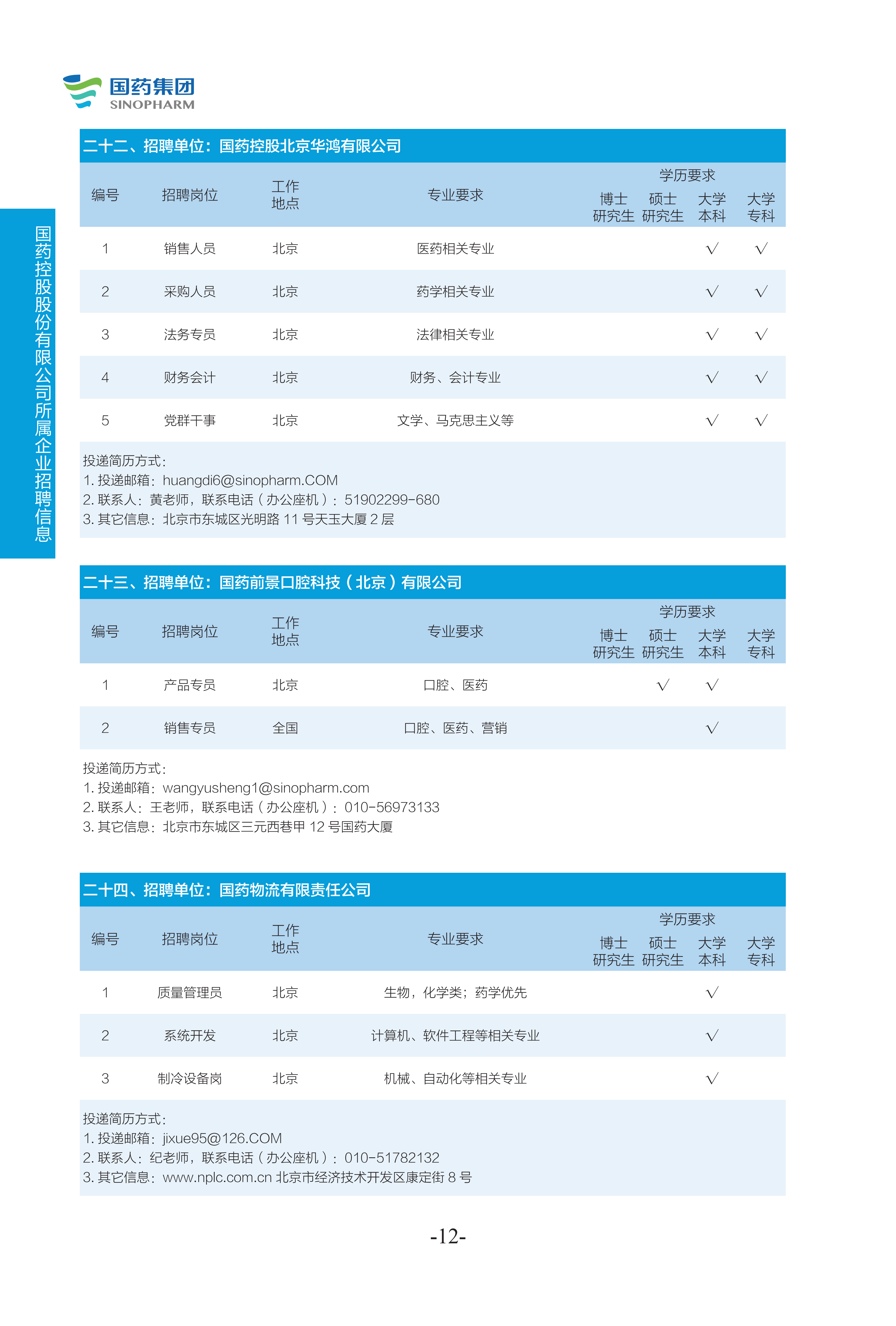 國藥集團2022年度校園招聘